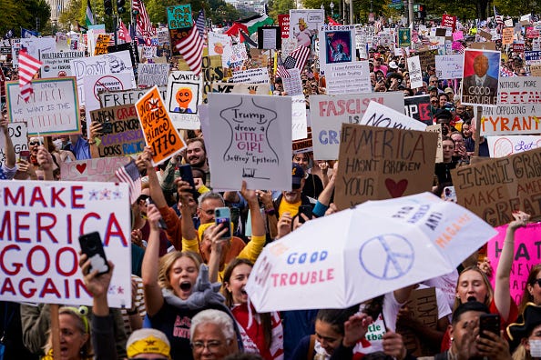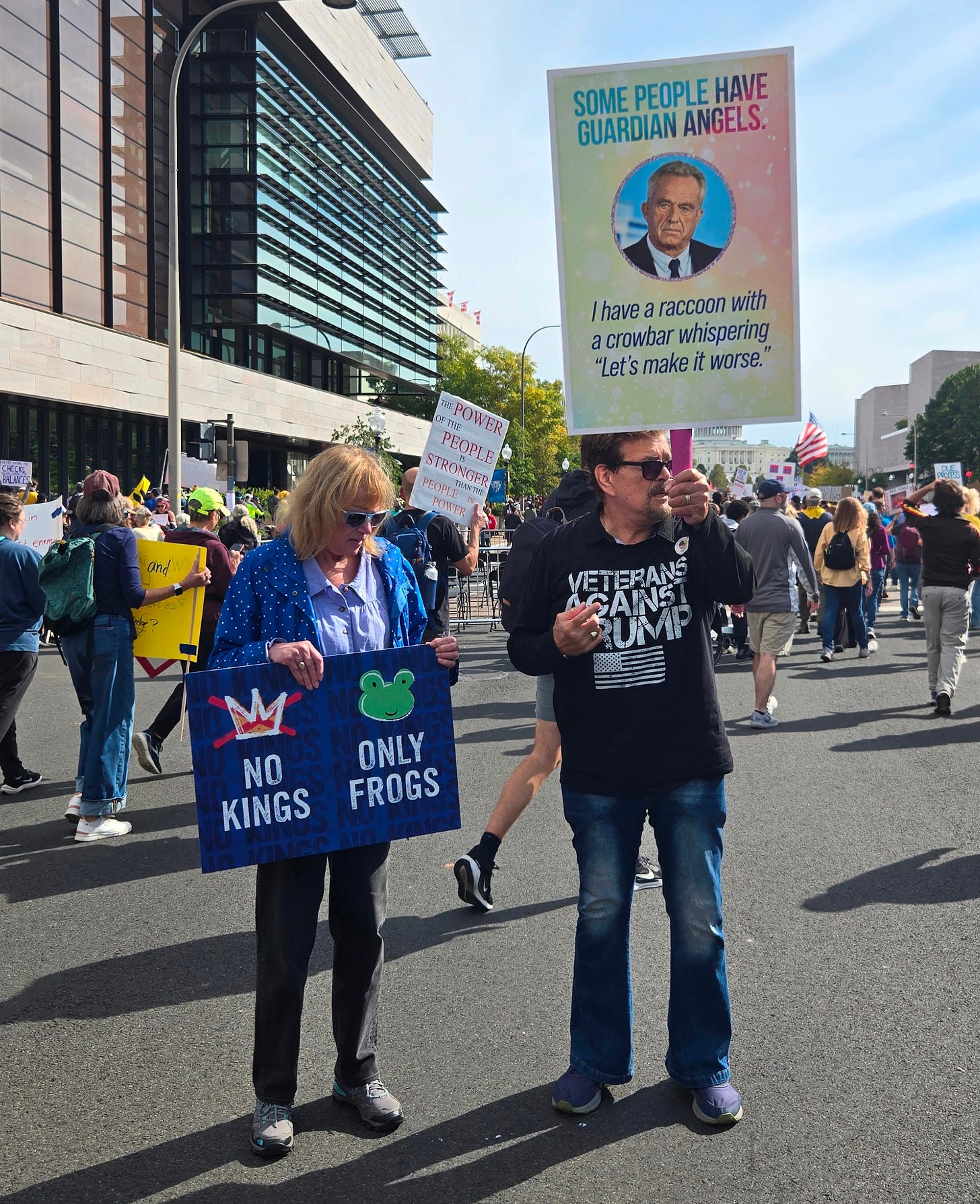 Hello. Just got back from the No Kings protest on the Mall in Washington D.C., a huge display of justified public outrage over an ongoing criminal and amoral assault against the people of the United States by a president intoxicated by power and poisoned by hatred and bigotry.