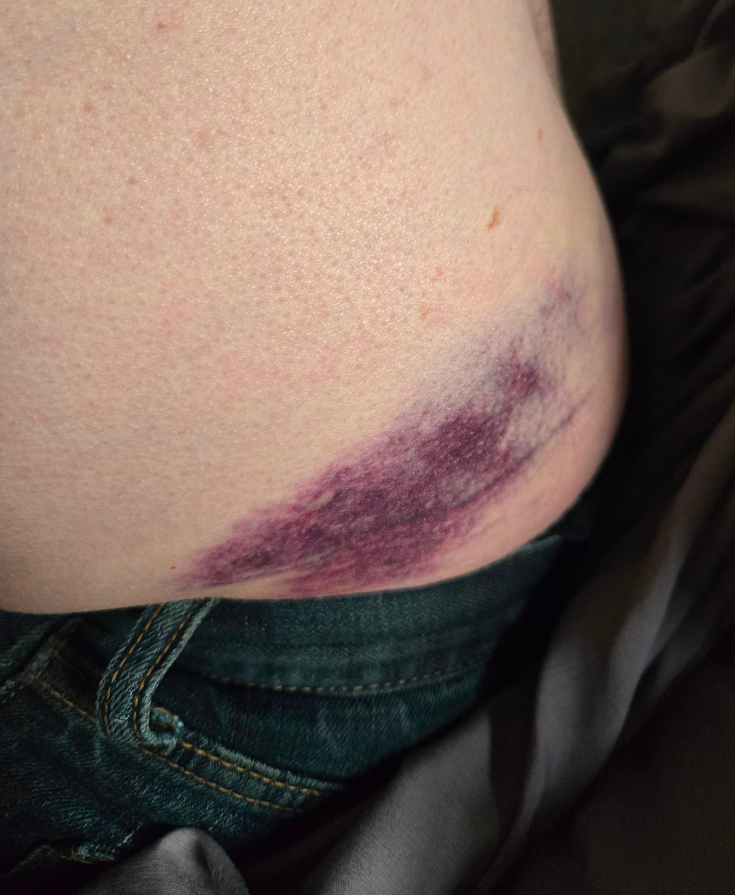 The official medical term for this sort of revolting bruise is “ecchymosis,” which seems to be a perfect description; and,