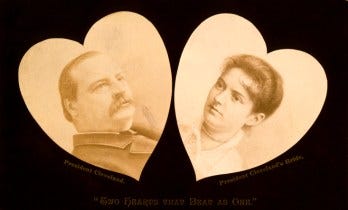 In 1885, Grover waddled into the White House as only its second bachelor president. He’d often been asked to explain this stubborn marital status, as he was rising from sheriff to mayor to governor to presidential candidate in an era where marriage was de rigueur for public figures. His stock answer, delivered with an insouciant smile, was likely intended to preempt any followups: “I am waiting for her to grow up.”
