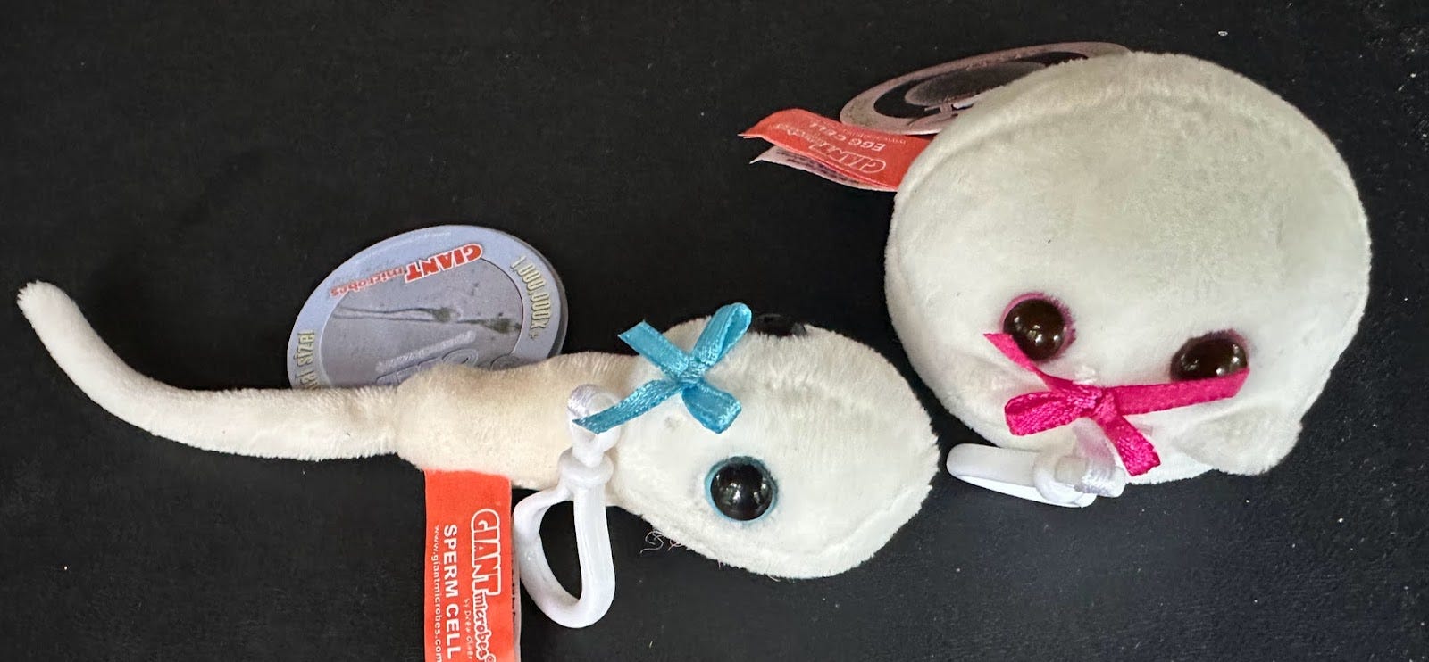 This week’s winner, our top Loserbard, receives this lovely pair of lovers: matching plush sperm and egg key chains, or just doodads with little clips. We trust that if you carry both of them, you’ll put them discreetly in your pocket to give them a little privacy. Courtesy of Dave Prevar, the only person we know to be a sperm and egg donor.